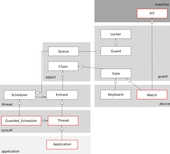 In task 3, we changed the synchronisation of activities within OOStuBS to the use of the pro-/epilogue model. Now you are supposed to apply a coarse-grained locking strategy and to define a system-call interface. The scheduler should be able to displace threads triggered by the timer interrupt.